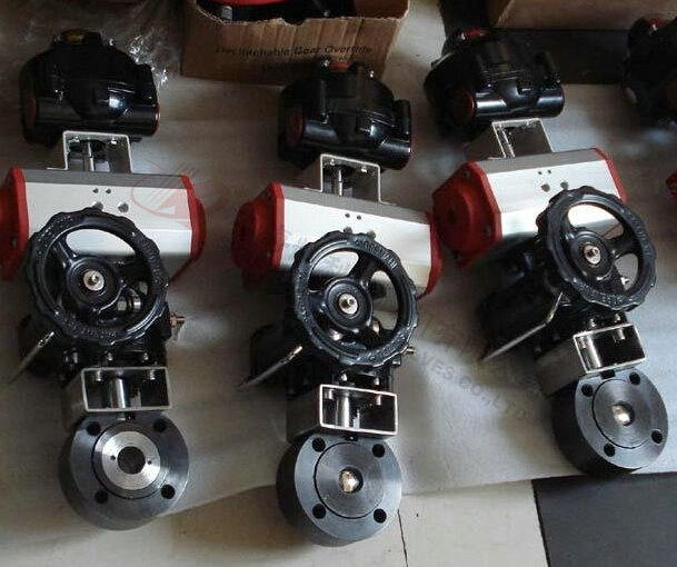 Q671F气动对夹式球阀适用于Class150、PN1.0~2.5MPa,工作温度 29~180℃(密封圈为增强聚四氟乙烯)或 29~300℃(密封圈为对位聚苯)的各种管路上,用于截断或接通管路中的介质,选用不同的材质,可分别适用于水、蒸汽、油品、硝酸、醋酸、氧化性介质、尿素等多种介质。