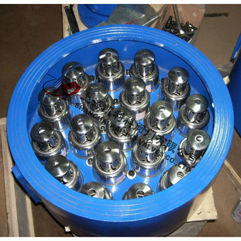 2、动态平衡阀采用铸钢、球墨铸铁铸造而成,可分为左右阀体法兰用螺栓、螺母固定。法兰中部夹有固定板及O型圈(丁睛橡胶 (N220SH)),板上有多个同样大小的圆孔可固定阀胆。阀胆采用不锈钢 (304-2B)、铜质,表面镀锡镍合金;阀胆具自清洁、抗堵塞功能。