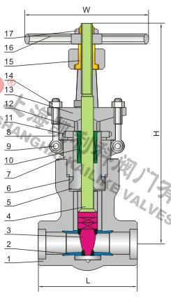 ●阀门的阀体与阀盖的连接采用压力自紧密封结构,楔形密封环与四开环组合,压力越高密封越可靠。