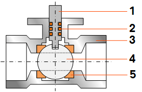 大多数球阀为手动操作的手柄。当使用者转动手柄90度,所述阀杆(1)和滚珠(4)。所述球具有通过它的孔,如图1所示,其允许流动移动通过阀手柄平行于管道或软管连接。当旋转90度,该中空部分与水流垂直,以阻止气体或液体穿过阀。在阀座(5)允许适当旋转球周围的密封,以防止介质从围绕球。O形环(2)和旋转允许适当密封的阀杆。根据媒体的类型,不同的壳体(3),滚珠(4)和阀座(5)材料均可用来确保没有腐蚀。